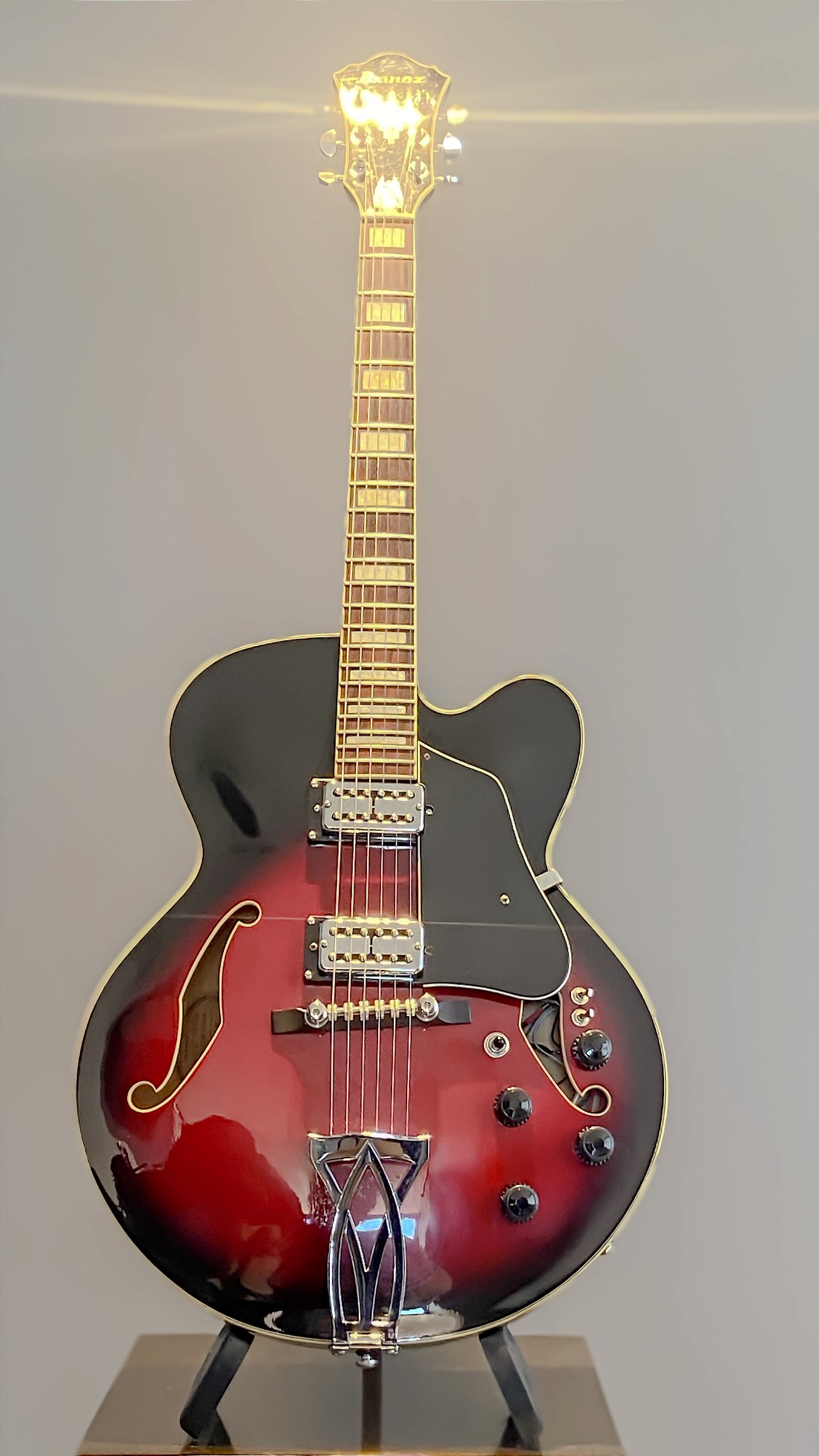 A **Ibanez Artcore AF75-TRS-12-04** é uma guitarra **full hollow body** tradicional, integrante da consagrada linha **Artcore**, reconhecida por oferecer instrumentos com excelente construção, resposta acústica refinada e ótimo custo-benefício dentro do segmento de guitarras archtop.
