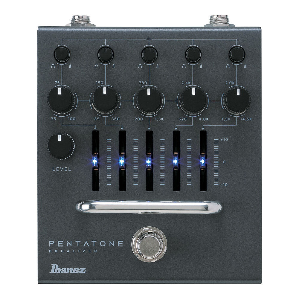 O Pentatone Equalizer é uma versão standalone da seção de equalizador de 5 bandas do Ibanez Pentatone Preamp. Adicionando um controle de Q variável continuamente em cada banda, que permite uma variedade maior de criação de timbre, possibilita uma versatilidade mais detalhada. Além disso, o circuito de alimentação de ±9V fornece um amplo headroom. Isso torna o equalizador paramétrico adequado não apenas para guitarras elétricas, mas também para equipamentos de sinal de saída de nível superior, como baixos elétricos e teclados.